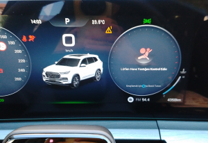 ‘FCW Etkinleştirildi’ yazar, 5 sn. cayır cayır öter. FCW = Front Collision Warning = Önden Çarpışma Uyarısı.